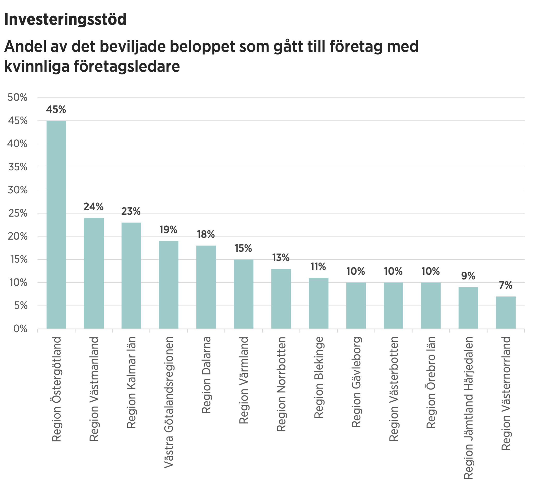 Regionen med högst andel av beloppet till kvinnliga företagsledare:
