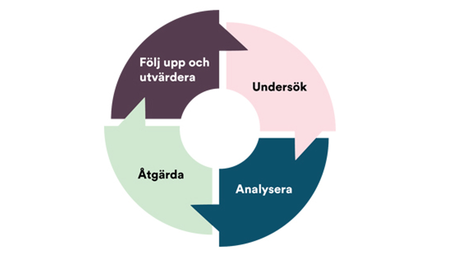 De fyra stegen innebär att ni arbetar systematiskt och stegvis, vilket är en förutsättning för all framgångsrik verksamhetsutveckling.